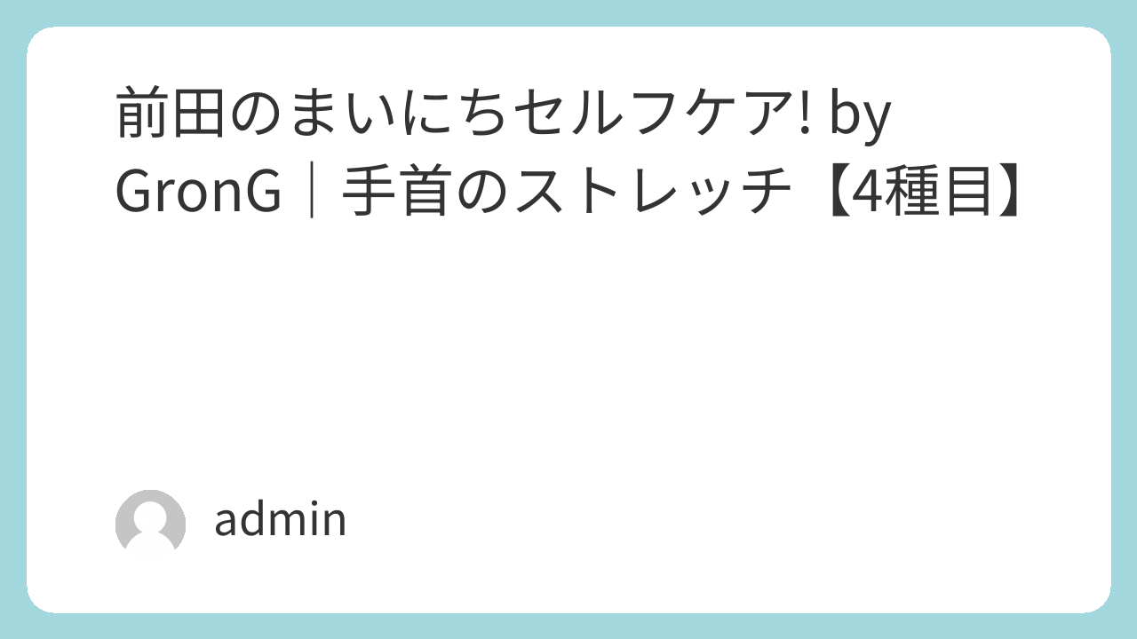 前田のまいにちセルフケア! by GronG|手首のストレッチ【4種目】 ヘルスケア X Facebook はてブ LINE Pinterest コピー 2026.03.21 前田のまいにちセルフケア by GronG 手首のストレッチ【4種目】